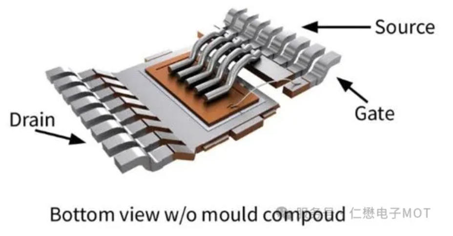 Internally, copper clips replace traditional gold wire bonding, in this way it can reduce RDS (ON) by 15% and temperature rise under high current by another 12%, making it particularly suitable for BMS double-sided mounting scenarios, with a 22% lower temperature than TOLL packages.
